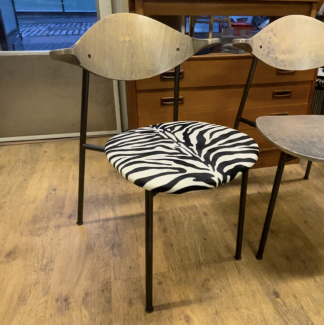 Kunnostettu ja verhoiltu seeprakankaalla.