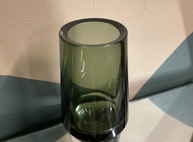 Hieno ja tukeva lasimaljakko Erkki Vesannolta. Väri oliivinvihreä, Pohjassa signeeraus Erkki Vesanto 3656.