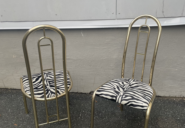 Seeprakankaalla päällystetty 80-luvun tuolipari.